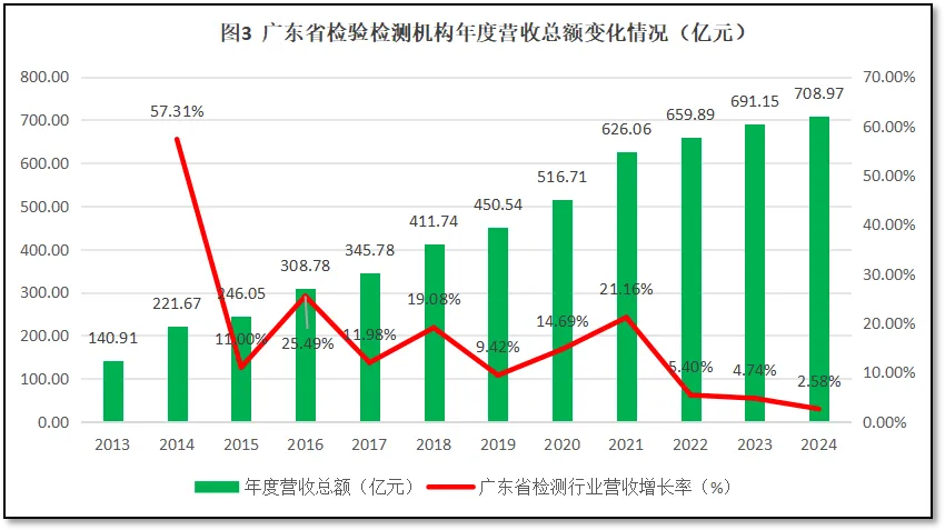 过去12年广东省检验检测机构年度营收总额的变化如图3所示。
