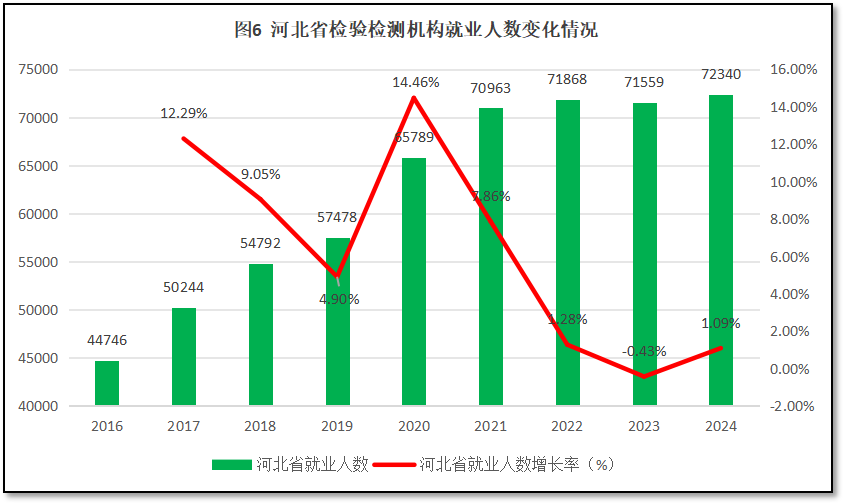 过去9年河北省检验检测行业就业人口的变化情况,如图6所示。